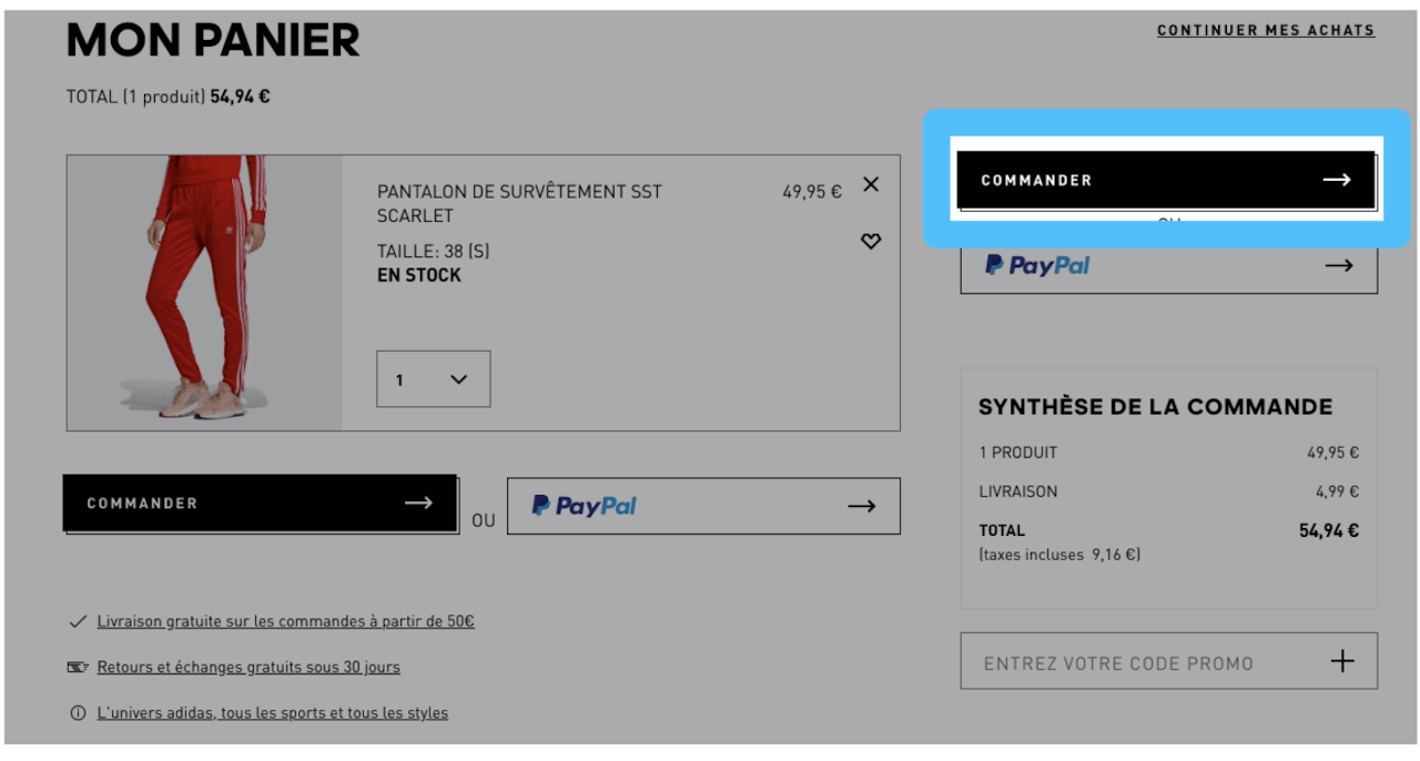 Cliquez ensuite sur Mon panier puis sur Commander ;