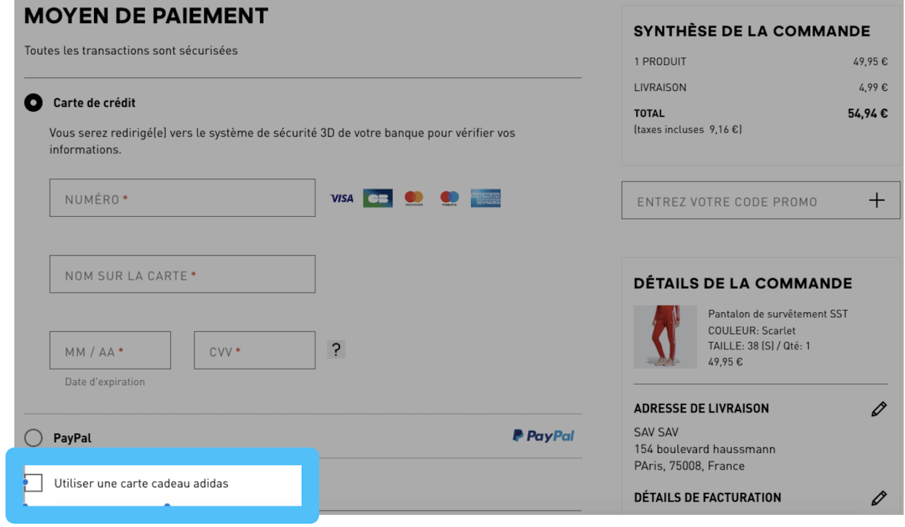 Utiliser ma carte cadeau Adidas