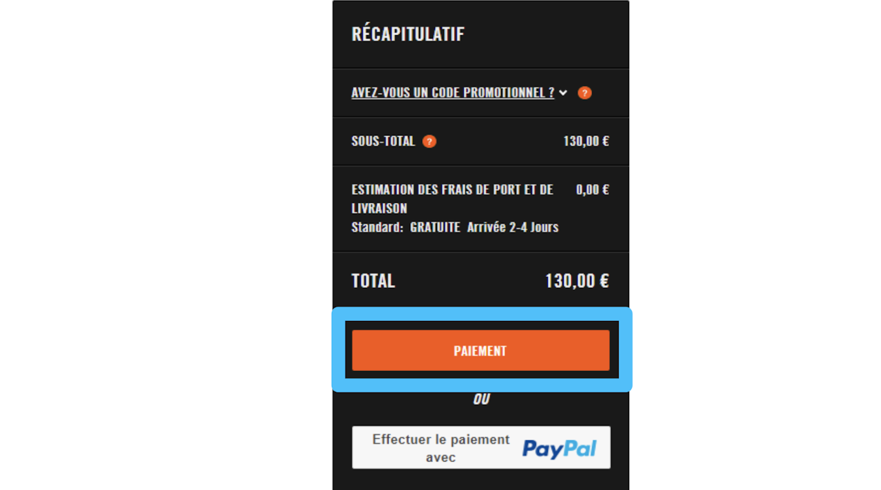 Pour cela, cliquez sur PAIEMENT situé dans le récapitulatif de votre achat ;