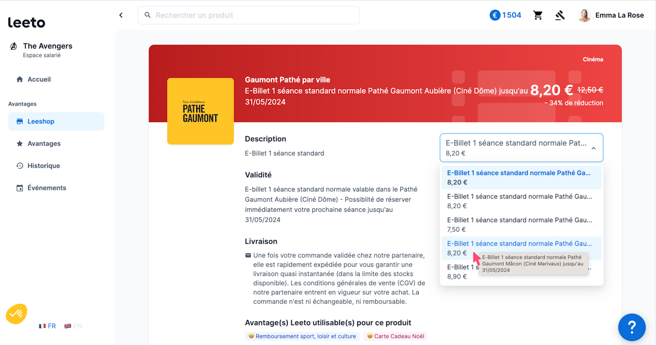 📱 Maintenant, passons à l'affichage sur mobile. Nous savons que cela peut sembler un peu moins pratique, mais ne vous inquiétez pas, nous avons tout prévu. Lorsque vous sélectionnez une option dans le menu déroulant sur votre téléphone, le nom de la ville concernée apparaîtra dans le titre de l'offre. Un petit geste pour une grande satisfaction cinématographique ! 🎬