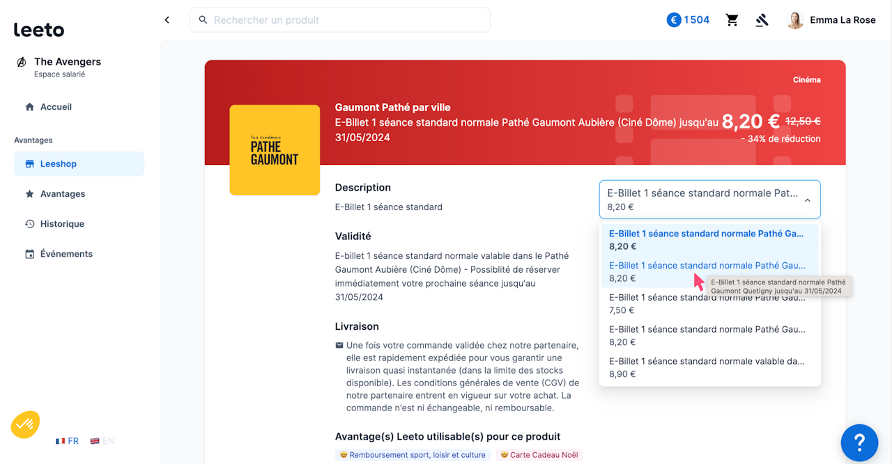 💻 Si vous commandez depuis un ordinateur, nous vous suggérons de pointer votre souris sur le billet en question dans le menu déroulant. Cela vous permettra de voir le nom complet de la ville associée à l'offre. Une petite astuce pour avoir une vue complète du nom dès le premier coup d'œil !